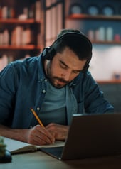 Über eine Webinarsoftware kommunizierst du per Videostreaming mit dem/der Trainer:in und anderen Teilnehmer:innen. Die Audioübertragung erfolgt über ein Mikrofon und Lautsprecher bzw. Kopfhörer. Du kannst Fragen bzw. Textnachrichten per Chat senden und deinen eigenen Bildschirminhalt freigeben, um gegebenenfalls Unterstützung von dem/der Trainer:in zu erhalten.