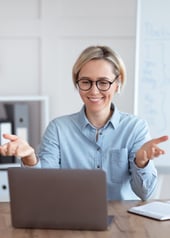 Über eine Webinarsoftware kommunizierst du per Videostreaming mit dem/der Trainer:in und anderen Teilnehmer:innen. Die Audioübertragung erfolgt über ein Mikrofon und Lautsprecher bzw. Kopfhörer. Du kannst Fragen bzw. Textnachrichten per Chat senden und deinen eigenen Bildschirminhalt freigeben, um gegebenenfalls Unterstützung von dem/der Trainer:in zu erhalten.