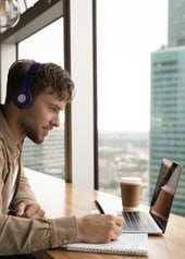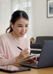 Über eine Webinarsoftware kommunizierst du per Videostreaming mit dem/der Trainer:in und anderen Teilnehmer:innen. Die Audioübertragung erfolgt über ein Mikrofon und Lautsprecher bzw. Kopfhörer. Du kannst Fragen bzw. Textnachrichten per Chat senden und deinen eigenen Bildschirminhalt freigeben, um gegebenenfalls Unterstützung von dem/der Trainer:in zu erhalten.