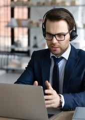 Über eine Webinarsoftware kommunizierst du per Videostreaming mit dem/der Trainer:in und anderen Teilnehmer:innen. Die Audioübertragung erfolgt über ein Mikrofon und Lautsprecher bzw. Kopfhörer. Du kannst Fragen bzw. Textnachrichten per Chat senden und deinen eigenen Bildschirminhalt freigeben, um gegebenenfalls Unterstützung von dem/der Trainer:in zu erhalten.