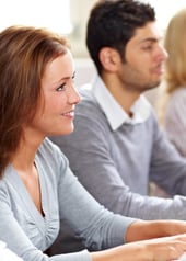 Über eine Webinarsoftware kommunizierst du per Videostreaming mit dem/der Trainer:in und anderen Teilnehmer:innen. Die Audioübertragung erfolgt über ein Mikrofon und Lautsprecher bzw. Kopfhörer. Du kannst Fragen bzw. Textnachrichten per Chat senden und deinen eigenen Bildschirminhalt freigeben, um gegebenenfalls Unterstützung von dem/der Trainer:in zu erhalten.
