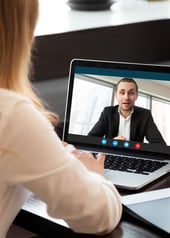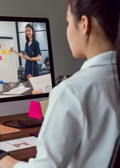 Über eine Webinarsoftware kommunizierst du per Videostreaming mit dem/der Trainer:in und anderen Teilnehmer:innen. Die Audioübertragung erfolgt über ein Mikrofon und Lautsprecher bzw. Kopfhörer. Du kannst Fragen bzw. Textnachrichten per Chat senden und deinen eigenen Bildschirminhalt freigeben, um gegebenenfalls Unterstützung von dem/der Trainer:in zu erhalten.