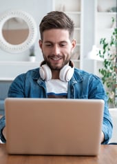 Über eine Webinarsoftware kommunizierst du per Videostreaming mit dem/der Trainer:in und anderen Teilnehmer:innen. Die Audioübertragung erfolgt über ein Mikrofon und Lautsprecher bzw. Kopfhörer. Du kannst Fragen bzw. Textnachrichten per Chat senden und deinen eigenen Bildschirminhalt freigeben, um gegebenenfalls Unterstützung von dem/der Trainer:in zu erhalten.