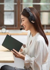 Über eine Webinarsoftware kommunizierst du per Videostreaming mit dem/der Trainer:in und anderen Teilnehmer:innen. Die Audioübertragung erfolgt über ein Mikrofon und Lautsprecher bzw. Kopfhörer. Du kannst Fragen bzw. Textnachrichten per Chat senden und deinen eigenen Bildschirminhalt freigeben, um gegebenenfalls Unterstützung von dem/der Trainer:in zu erhalten.
