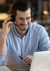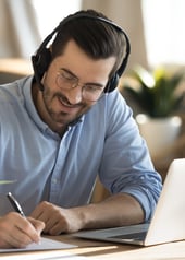Über eine Webinarsoftware kommunizierst du per Videostreaming mit dem/der Trainer:in und anderen Teilnehmer:innen. Die Audioübertragung erfolgt über ein Mikrofon und Lautsprecher bzw. Kopfhörer. Du kannst Fragen bzw. Textnachrichten per Chat senden und deinen eigenen Bildschirminhalt freigeben, um gegebenenfalls Unterstützung von dem/der Trainer:in zu erhalten.