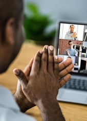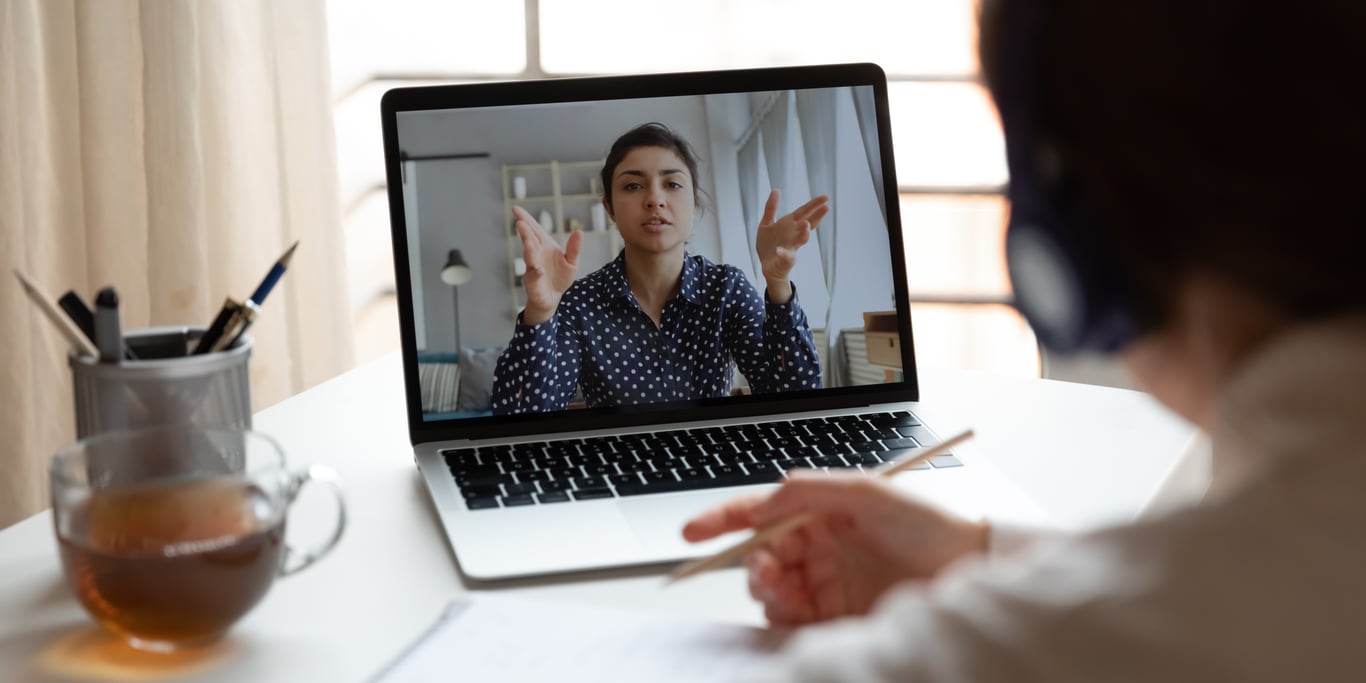 Über eine Webinarsoftware kommunizierst du per Videostreaming mit dem/der Trainer:in und anderen Teilnehmer:innen. Die Audioübertragung erfolgt über ein Mikrofon und Lautsprecher bzw. Kopfhörer. Du kannst Fragen bzw. Textnachrichten per Chat senden und deinen eigenen Bildschirminhalt freigeben, um gegebenenfalls Unterstützung von dem/der Trainer:in zu erhalten.