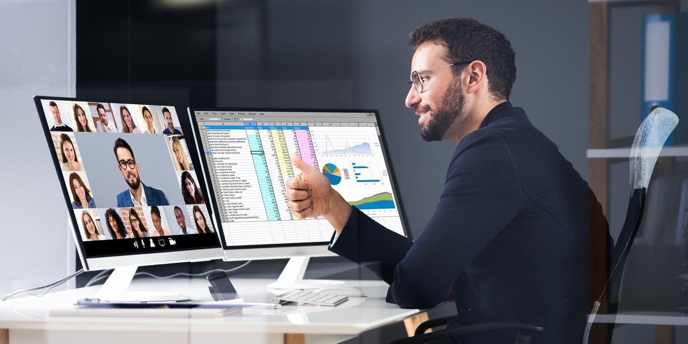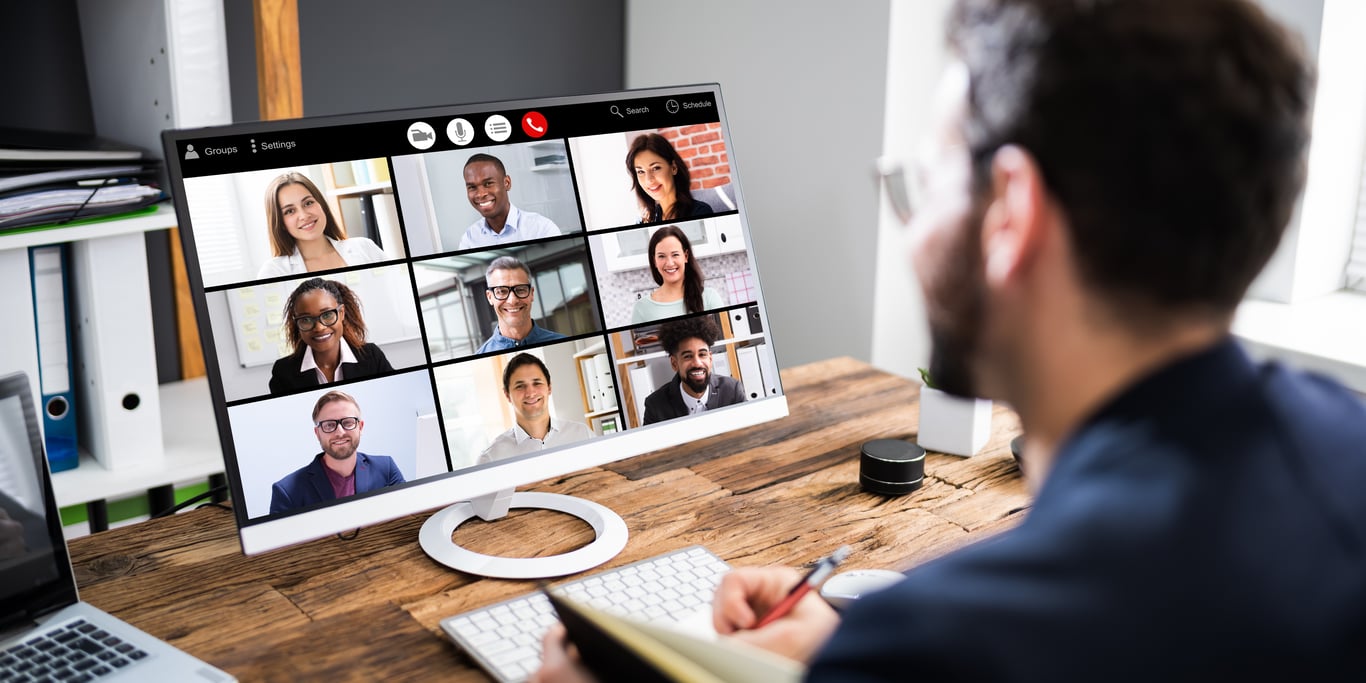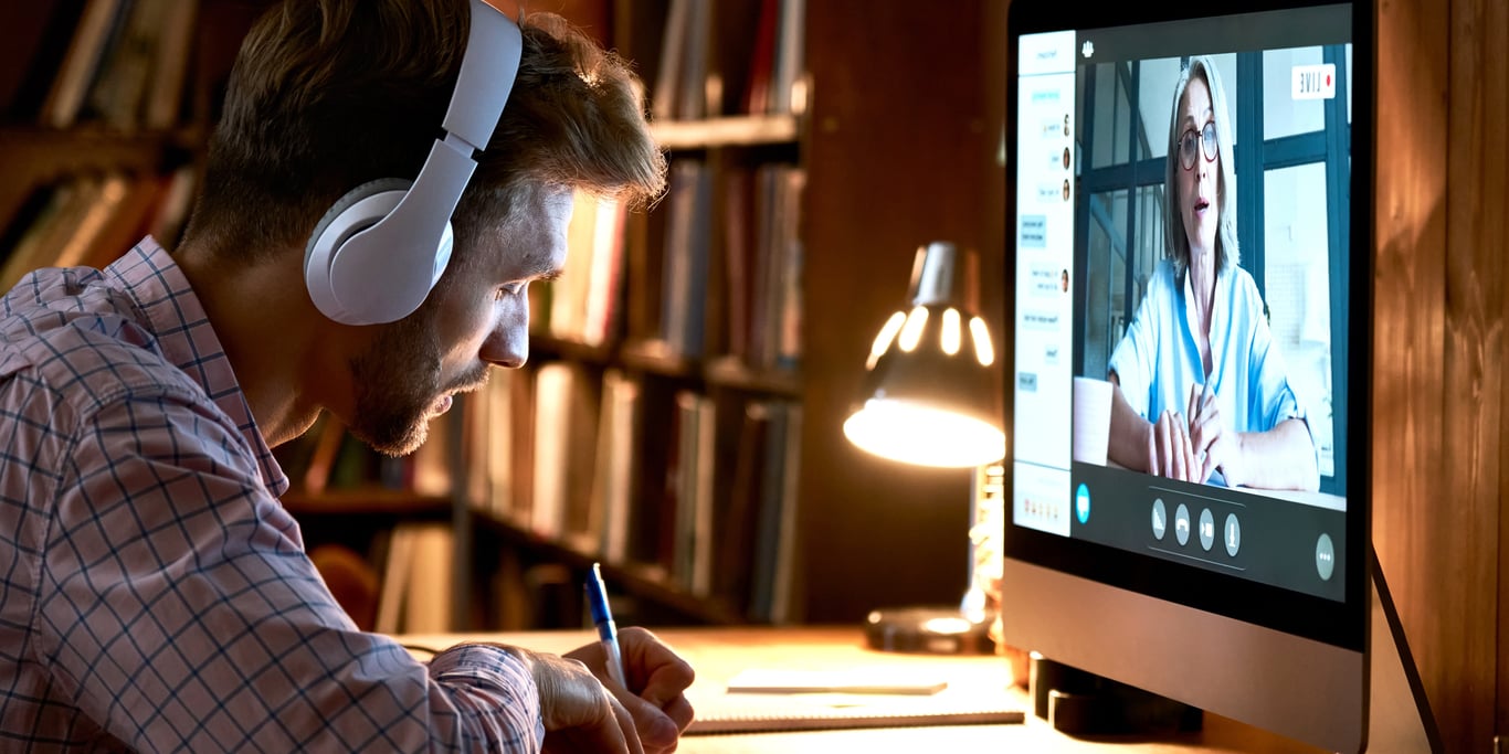Über eine Webinarsoftware kommunizierst du per Videostreaming mit dem/der Trainer:in und anderen Teilnehmer:innen. Die Audioübertragung erfolgt über ein Mikrofon und Lautsprecher bzw. Kopfhörer. Du kannst Fragen bzw. Textnachrichten per Chat senden und deinen eigenen Bildschirminhalt freigeben, um gegebenenfalls Unterstützung von dem/der Trainer:in zu erhalten.